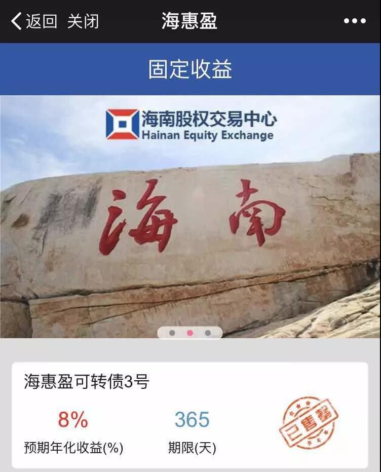 2月1日上午,海南股權(quán)交易中心在“海惠盈”綜合金融服務(wù)平臺(tái)正式上線海惠盈可轉(zhuǎn)債3號(hào),總額度為300萬元。2月2日晚,本次可轉(zhuǎn)債在35小時(shí)內(nèi)迅速完成所有認(rèn)購,完美收官。海惠盈可轉(zhuǎn)債3號(hào)是“海惠盈”平臺(tái)目前發(fā)行的首...