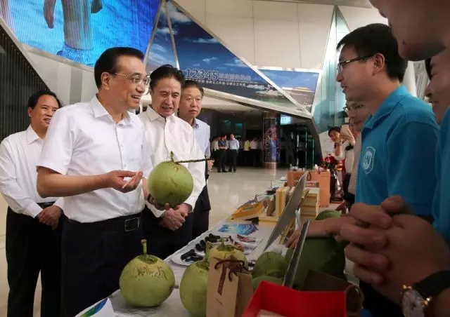 3月22日下午,李克強在三亞市民游客中心與海南的大學生創(chuàng)業(yè)團隊進行面對面交流,鼓勵大學生們要勇于創(chuàng)新和創(chuàng)業(yè),其中就有海南股權交易中心掛牌企業(yè)—??谪磙r(nóng)果業(yè)有限公司,李克強現(xiàn)場使用仨農(nóng)果業(yè)研發(fā)的“開椰神器”鉆椰子喝水,并點贊其創(chuàng)意發(fā)明。