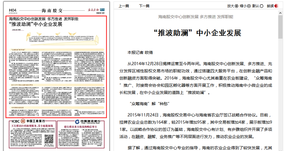 近日,證券導(dǎo)報以兩個版面整版報道海南股權(quán)交易中心兩周年,關(guān)注股交中心兩年以來的發(fā)展。