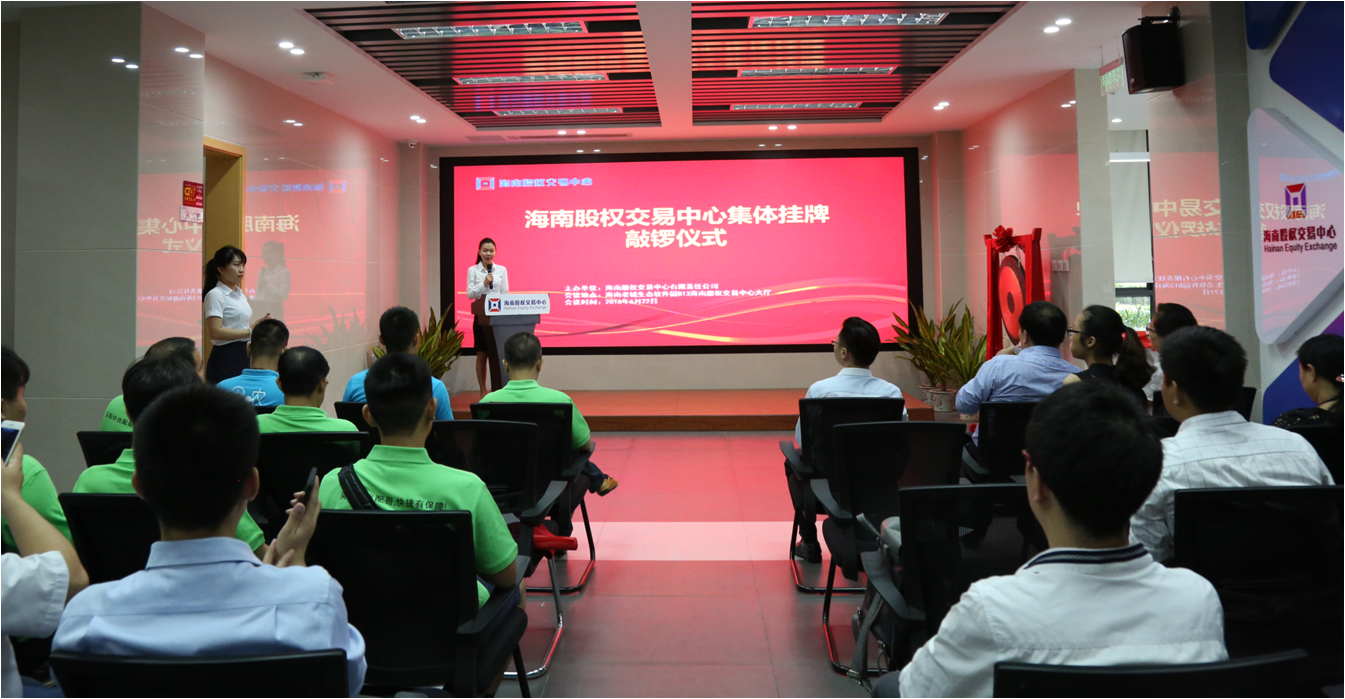 6月22日上午,海南股權交易中心企業集體掛牌儀式,在海南生態軟件園B13號股交中心一樓交易大廳舉行。3家企業現場集體掛牌展示板,股交中心副總裁程棟才出席掛牌儀式。