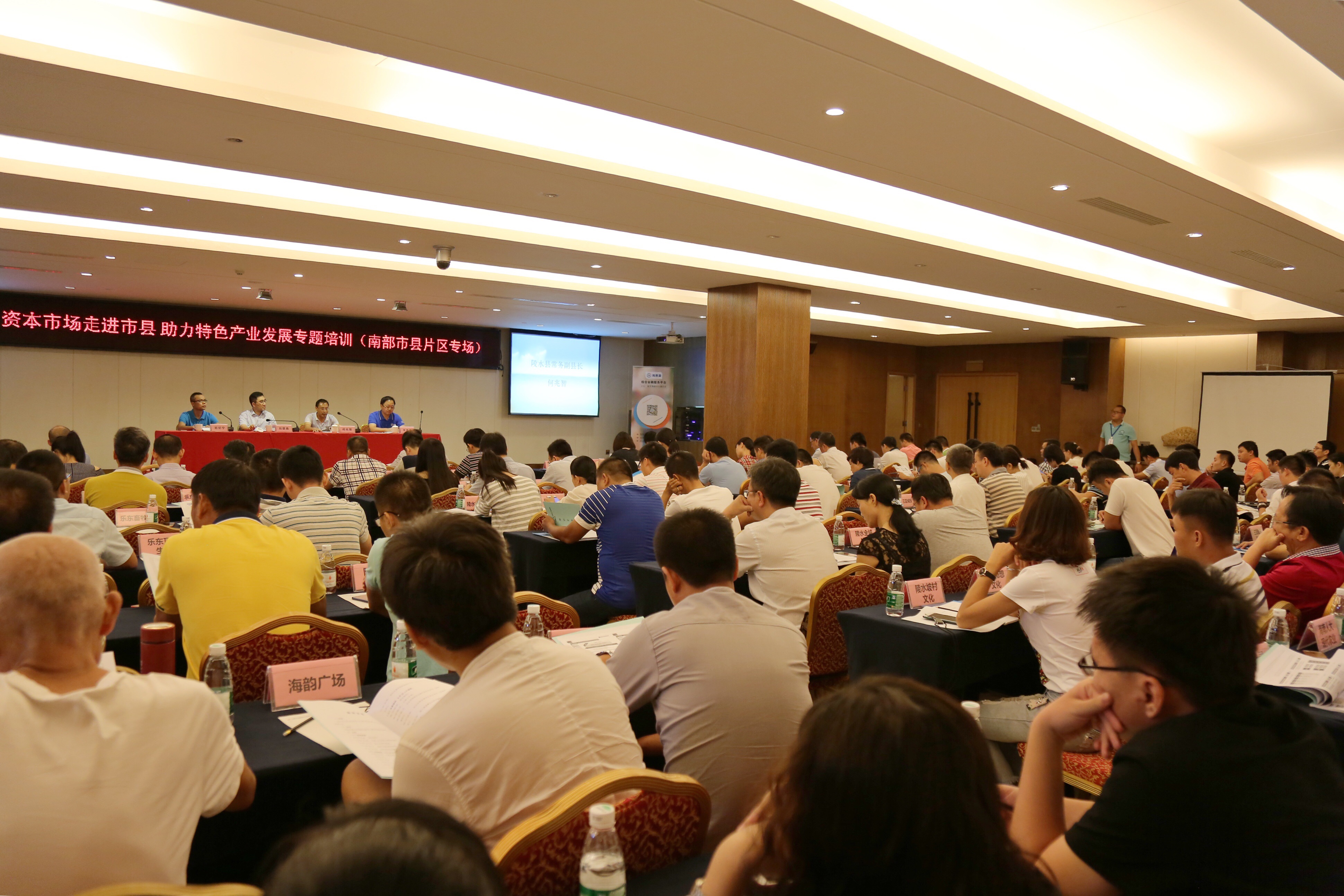 為進一步貫徹落實沈曉明省長提出的“利用好國家貧困縣的優(yōu)惠政策,促進地方經(jīng)濟發(fā)展”的工作要求,落實省委省政府提出的綠色經(jīng)濟發(fā)展戰(zhàn)略,8月24日-25日,海南股權交易中心“助力中小微企業(yè)發(fā)展工程”走進陵水,支持海南省政府金融辦、海南證監(jiān)局聯(lián)合主辦,陵水縣政府協(xié)辦的“資本市場走進市縣助力特色產(chǎn)業(yè)發(fā)展”(瓊南片區(qū))的專題培訓活動,活動旨在加強我省各級政府領導干部對資本市場的認識,利用好資本市場各種融資工具,促進市縣特色產(chǎn)業(yè)發(fā)展。此次培訓活動特邀請上海證券交易所、全國中小企業(yè)股份轉(zhuǎn)讓系統(tǒng)(新三板)、各大證券公司及企業(yè)的專家老師作專題培訓交流。