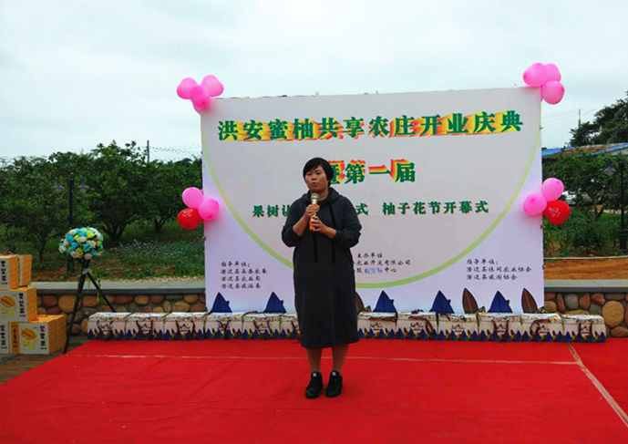 洪安蜜柚果樹認籌者代表現場發言。“柚子正宗,雖然價格貴,但是因為品質好,口感好,得到許多消費者的認可。”