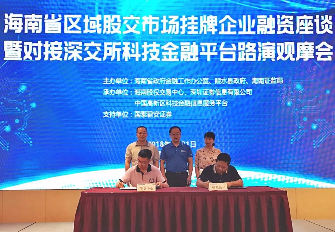 為支持我省區域性股權市場發展,加強海南股權交易中心掛牌企業與深圳證券交易所的有效對接,將省外資本與我省重點產業掛牌企業發展相融合,更大范圍拓寬我省中小企業融資渠道,更好地服務海南自由貿易區(港)建設,7月31日,海南省政府金融工作辦公室、陵水縣政府和海南證監局聯合在陵水縣舉辦海南省區域股交市場掛牌企業融資座談暨深交所科技金融平臺路演觀摩會?;顒佑珊D瞎蓹嘟灰字行?、深圳證券信息有限公司和中國高新區科技金融信息服務平臺一同承辦,并獲得國泰君安證券的大力支持。