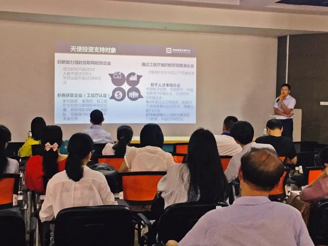 股交中心機(jī)構(gòu)合作部負(fù)責(zé)人蔣文斌為在場(chǎng)企業(yè)介紹了區(qū)域性股權(quán)交易市場(chǎng)的現(xiàn)狀及股交中心的發(fā)展?fàn)顩r,并就“股交中心如何助力海南高新技術(shù)及科技型企業(yè)發(fā)展”這一核心問題進(jìn)行了詳細(xì)的說明和講解,同時(shí),向在場(chǎng)的企業(yè)介紹了股交中心于6月20日正式設(shè)立的海南首個(gè)專注于互聯(lián)網(wǎng)初創(chuàng)企業(yè)天使投資的服務(wù)板塊“天使板”及天使投資相關(guān)情況,鼓勵(lì)和歡迎高新技術(shù)及科技型企業(yè)掛牌天使板,通過天使板實(shí)現(xiàn)企業(yè)融資和發(fā)展的目標(biāo)。