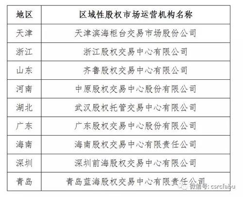 根據(jù)《國(guó)務(wù)院辦公廳關(guān)于規(guī)范發(fā)展區(qū)域性股權(quán)市場(chǎng)的通知》(國(guó)辦發(fā)〔2017〕11號(hào))、《區(qū)域性股權(quán)市場(chǎng)監(jiān)督管理試行辦法》(證監(jiān)會(huì)令第132號(hào))有關(guān)規(guī)定,區(qū)域性股權(quán)市場(chǎng)運(yùn)營(yíng)機(jī)構(gòu)名單由省級(jí)人民政府實(shí)施管理并予以公告,同時(shí)向證監(jiān)會(huì)備案。自2018年4月27日公示《全國(guó)區(qū)域性股權(quán)市場(chǎng)運(yùn)營(yíng)機(jī)構(gòu)備案名單(第一批)》以來(lái),9個(gè)地區(qū)按規(guī)定要求向我會(huì)備案區(qū)域性股權(quán)市場(chǎng)運(yùn)營(yíng)機(jī)構(gòu)情況。具體名單如下: