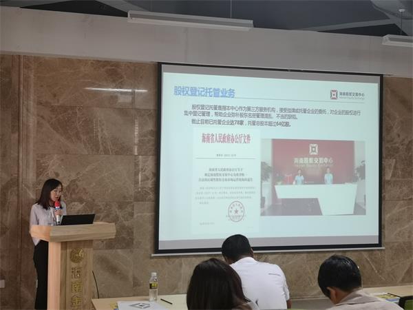 在隨后的業務宣講環節,海南股交風險管理部、運營管理部、創新融資部就掛牌企業合規若干規定、年報披露以及股權轉讓、股權質押、定向增資、可轉債業務等內容為參會的15家企業進行了專題宣講。