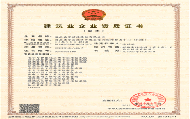 | 主營業務: | 消防工程配套設備的安裝、調試、設計,消防設施維護保養檢測,項目代建,建筑工程,土木工程,水利水電工程,河道疏浚,室內外裝修裝飾工程設計施工,水電安裝工程,中央空調安裝工程,電子與智能化工程設計施工,機電設備安裝工程,環保工程,公路工程,市政公用工程,電力工程,防雷工程設計施工,防雷裝置的檢測,園林綠化工程設計施工,通信工程,通信設備維修,鋼結構工程,人防工程,古建筑工程,古建筑維修,建筑機械租賃及銷售,船舶設施制造、維修,消防器材批發、零售及維修。 |