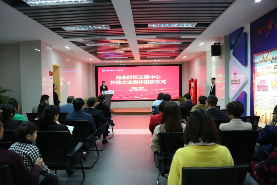 3月1日上午,海南股權交易中心企業集體掛牌儀式,在海南生態軟件園B13號一樓隆重舉行。5家企業現場集體掛牌,股交中心總裁班淼琦、副總裁吳惠玉和程棟才出席掛牌儀式。