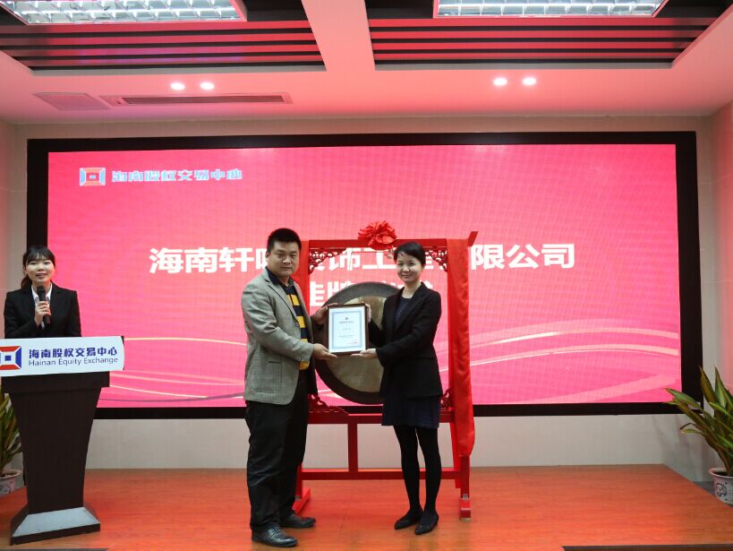 參與本次集體掛牌儀式的企業分別是:海南大信園林股份有限公司、海南高升醫藥科技開發股份有限公司、海南釜王實業股份有限公司、海南軒鳴裝飾工程有限公司和海南家美樂家庭服務管理有限公司。